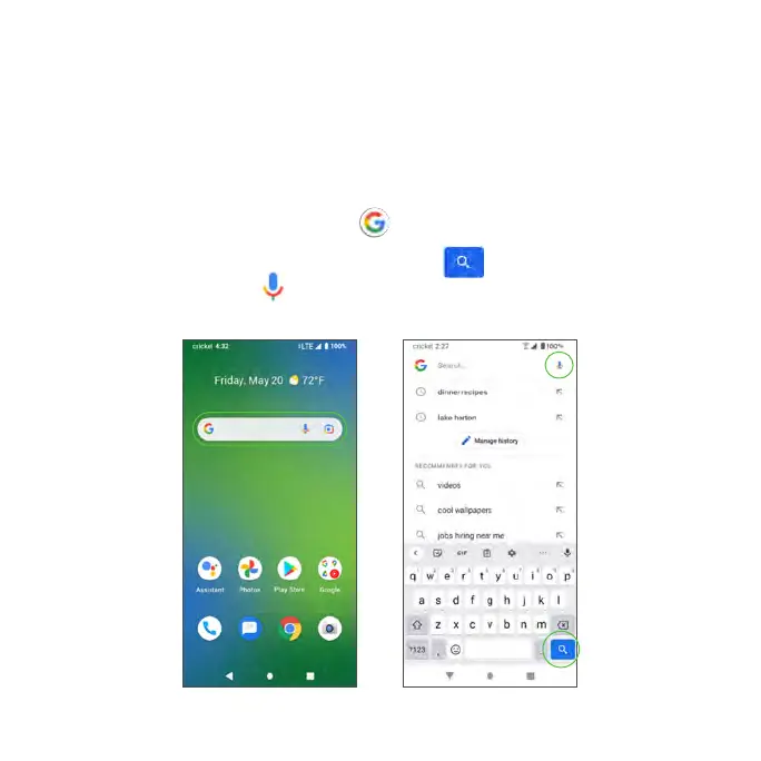 1. From the Home screen, tap the Google bar.