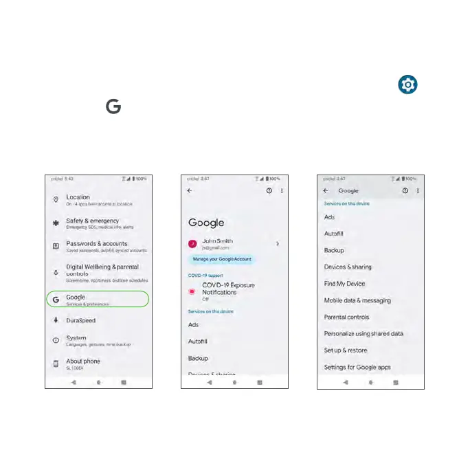 Configure your devices Google settings. Available options depend on your