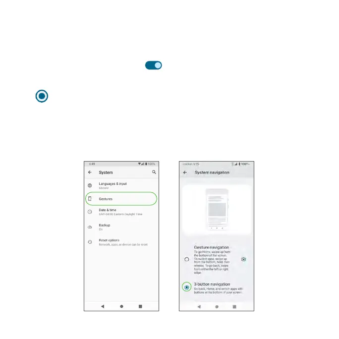 Tap next to Gesture navigation or 3-button navigation to select.