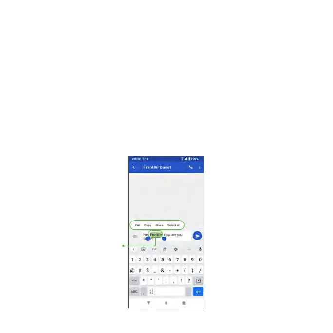 3. The following options will appear: Cut, Copy, Paste (if you have text copied