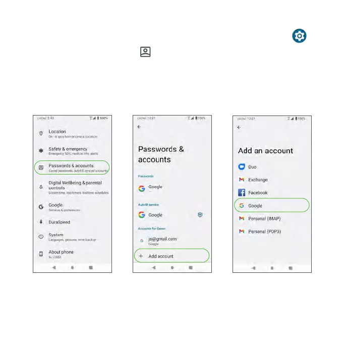 2. Tap Passwords & accounts > Add account.