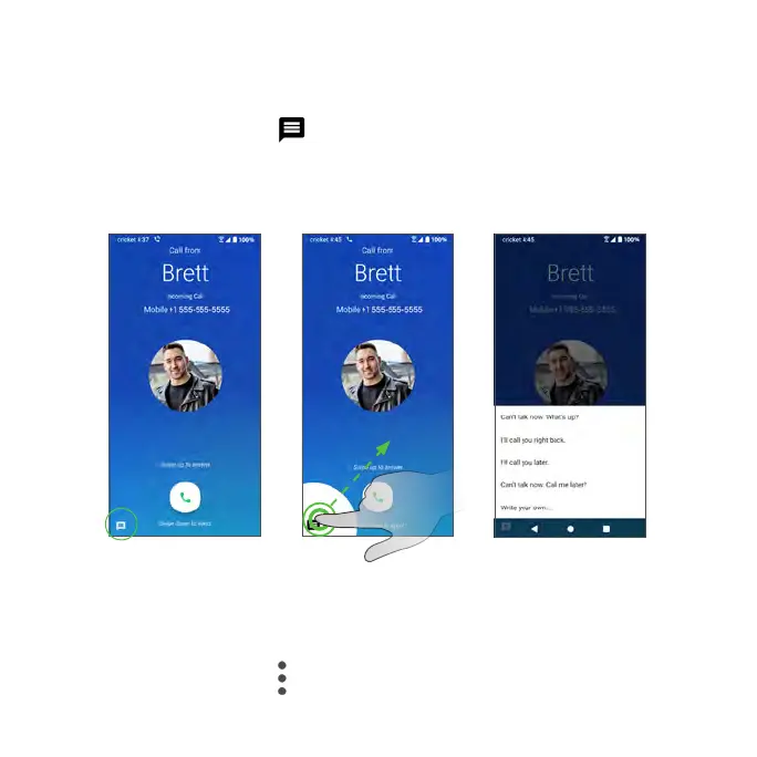 1. When a call arrives, hold and swipe up from the bottom left corner of