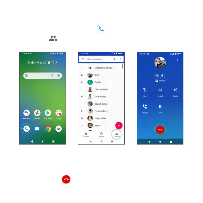 You can place phone calls directly from your Contacts list.