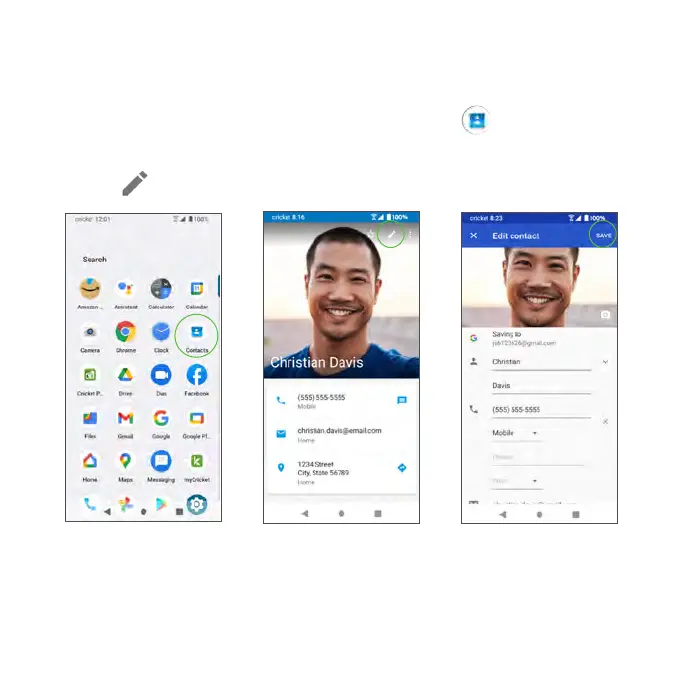 Add or edit a contact’s information, assign a photo, customize with a unique