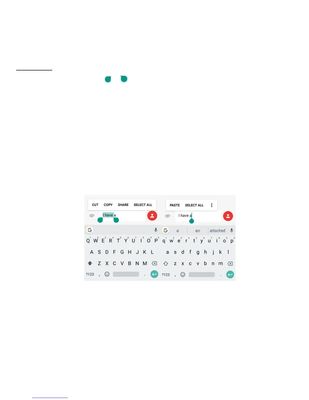 • CUT: Cut selected text.