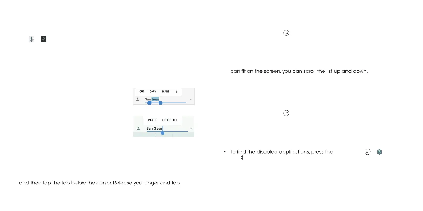 • Cut or copy: Select the text you want to manipulate. Then tap CUT or