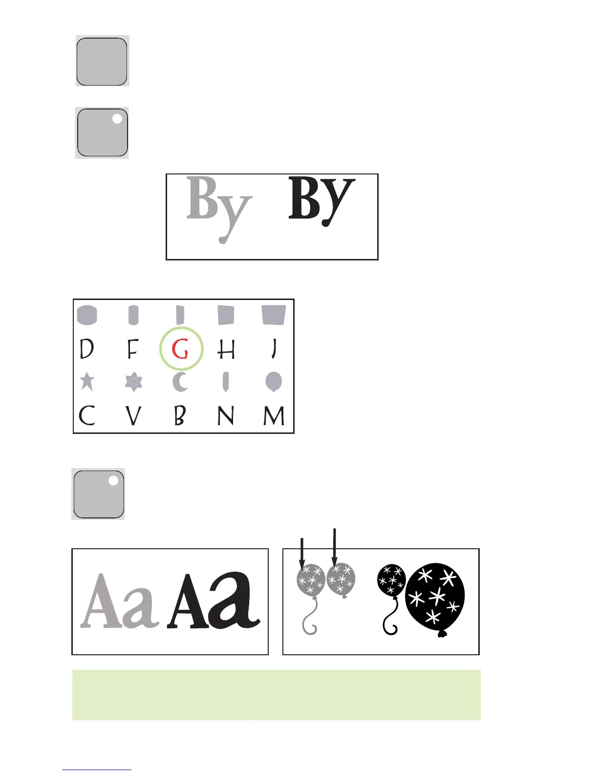all characters on the LCD screen. For example, you cannot select an “A” at 1" (2.5 cm) and