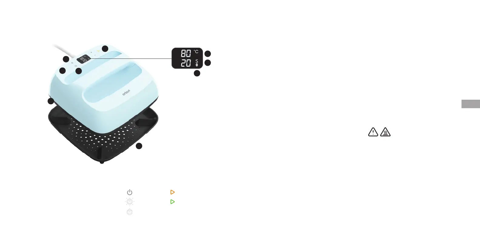 VOORZICHTIG: Warmteplaat (8) wordt erg heet