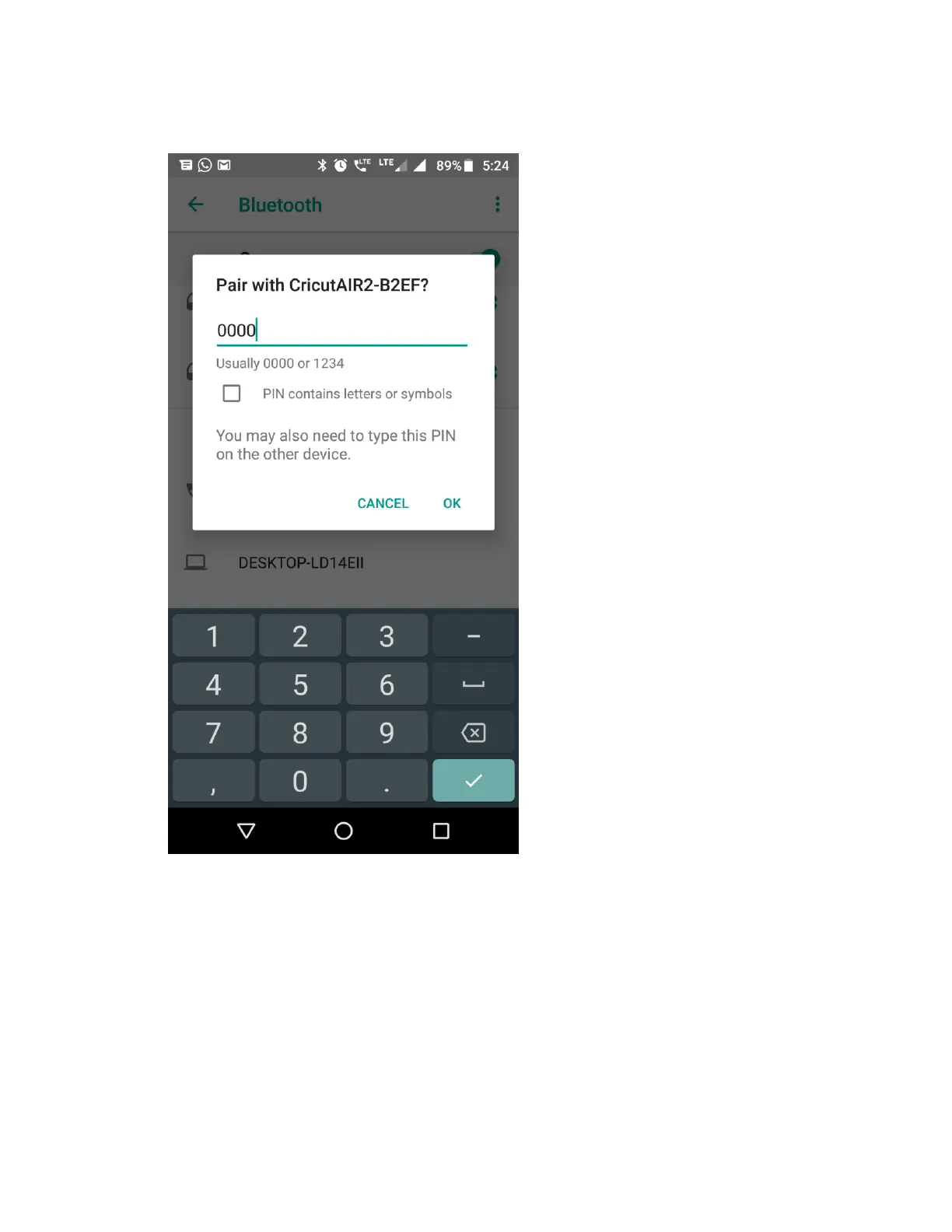 5. When prompted, type PIN 0000, then select OK.