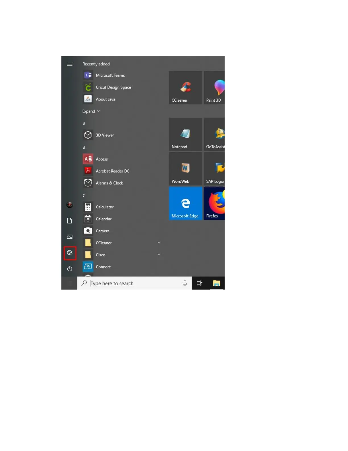 5. Open the Start menu and select Settings.