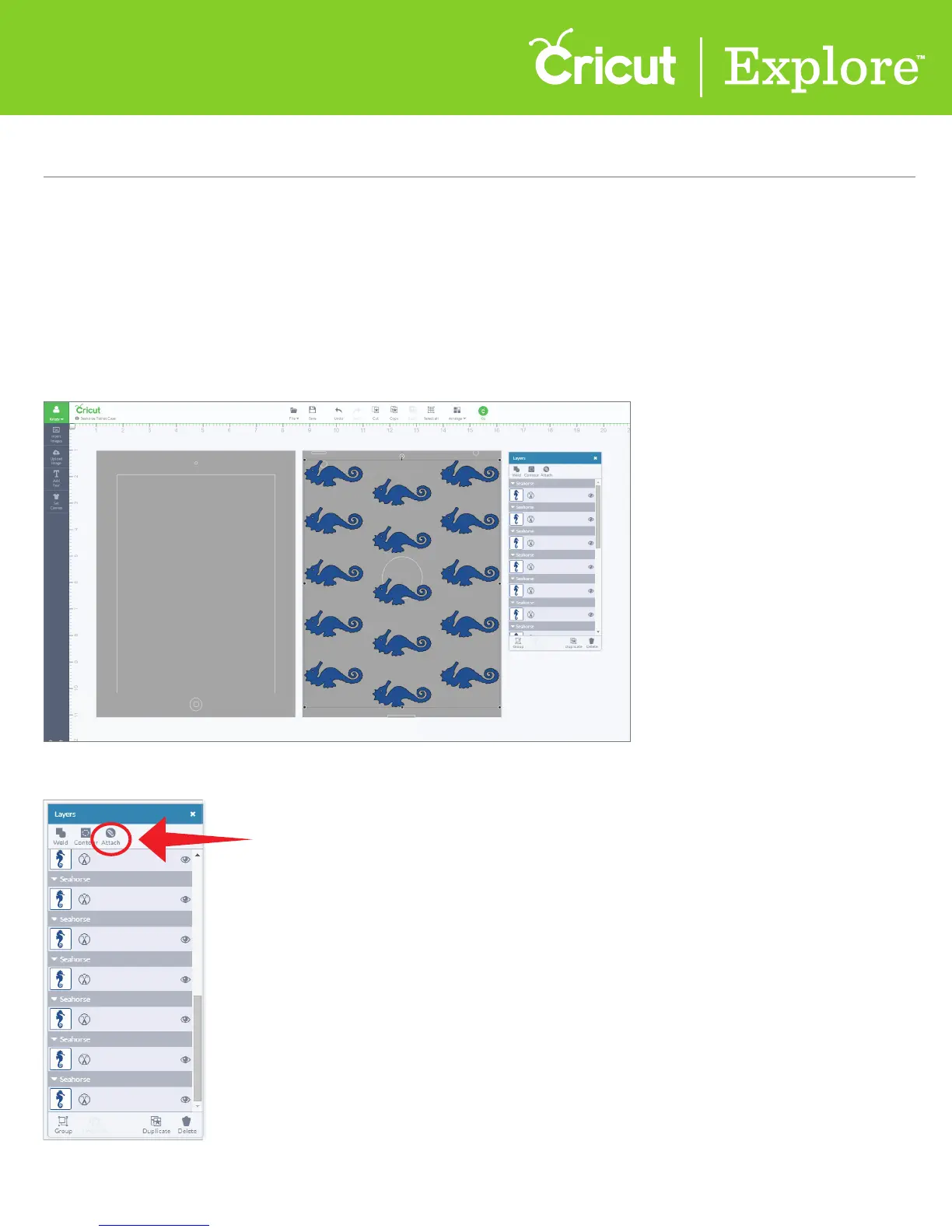will appear exactly as they show up on your design screen. Attach can also fasten a write or score line