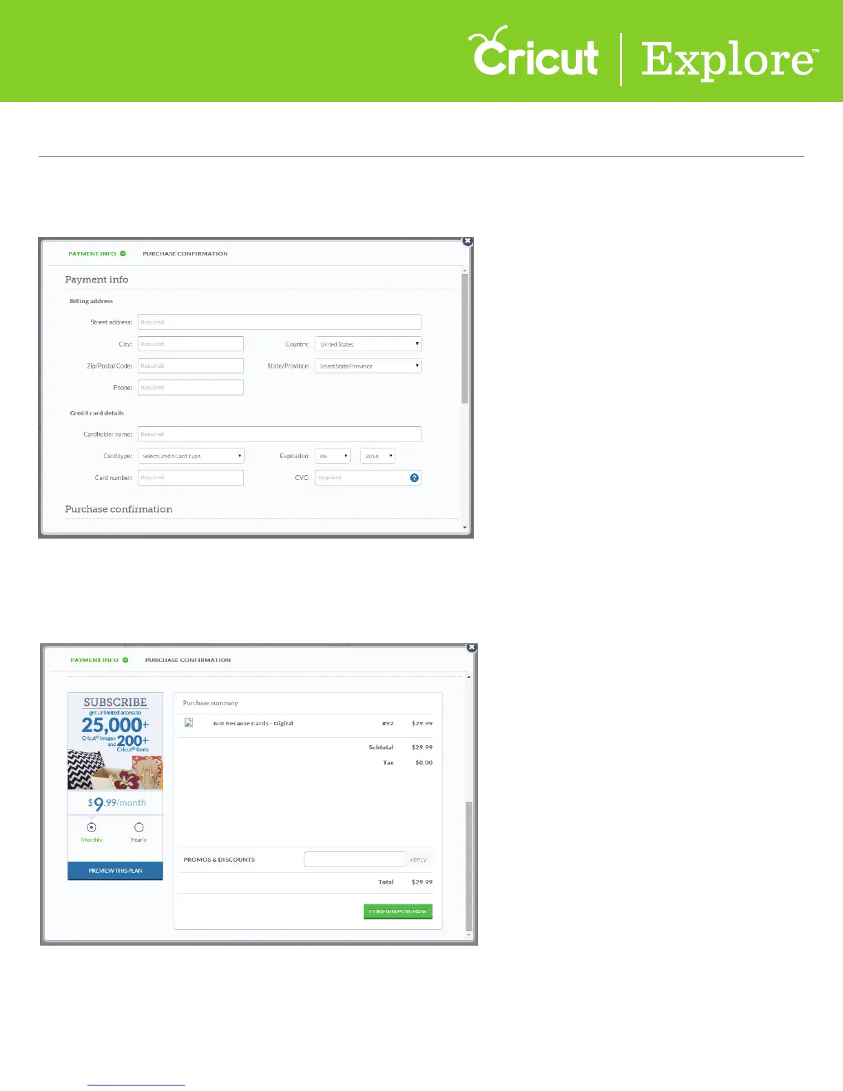 Step 5 If you haven’t already, enter your payment information. Cricut Design Space