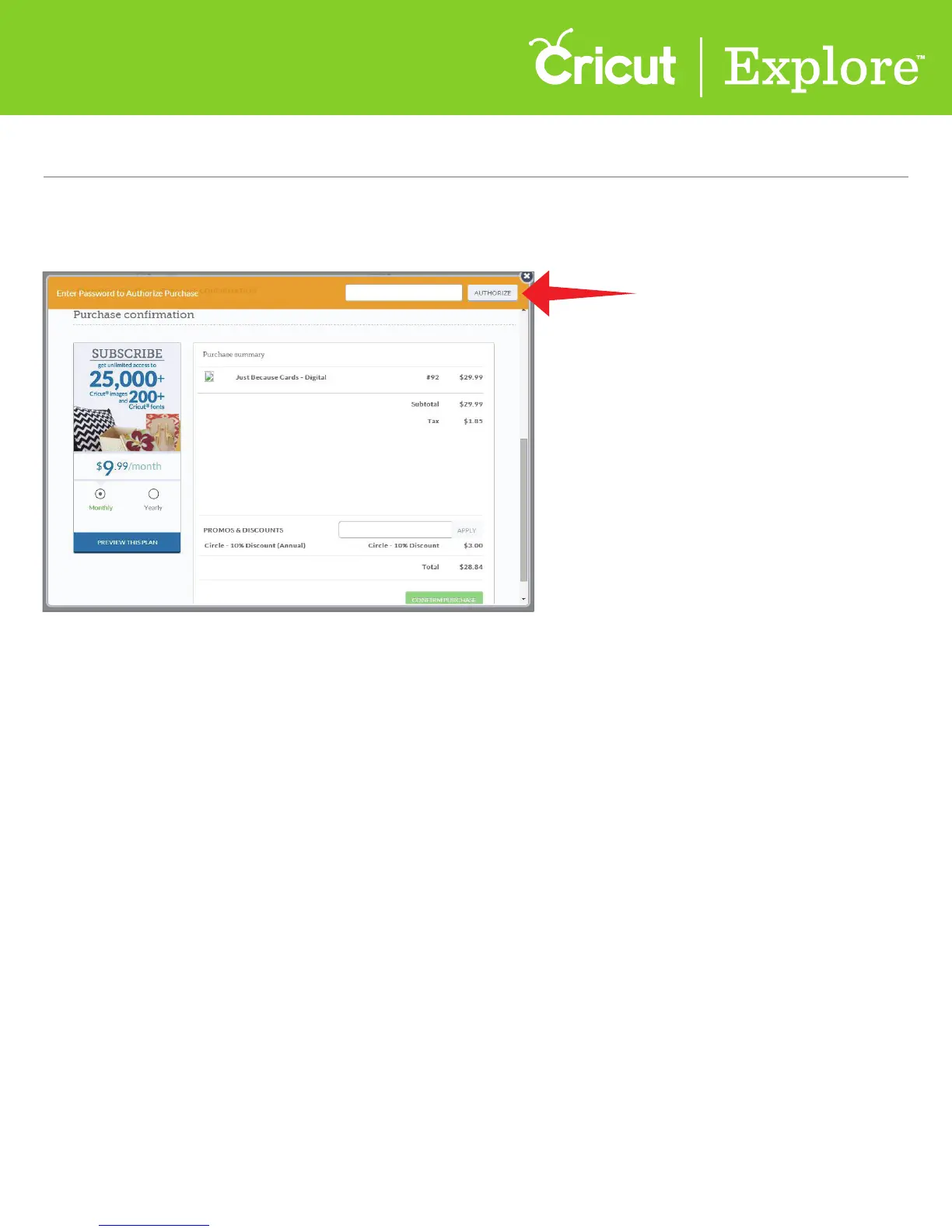 Step 5 Complete your purchase by entering your password in the Authorize Purchase box, and