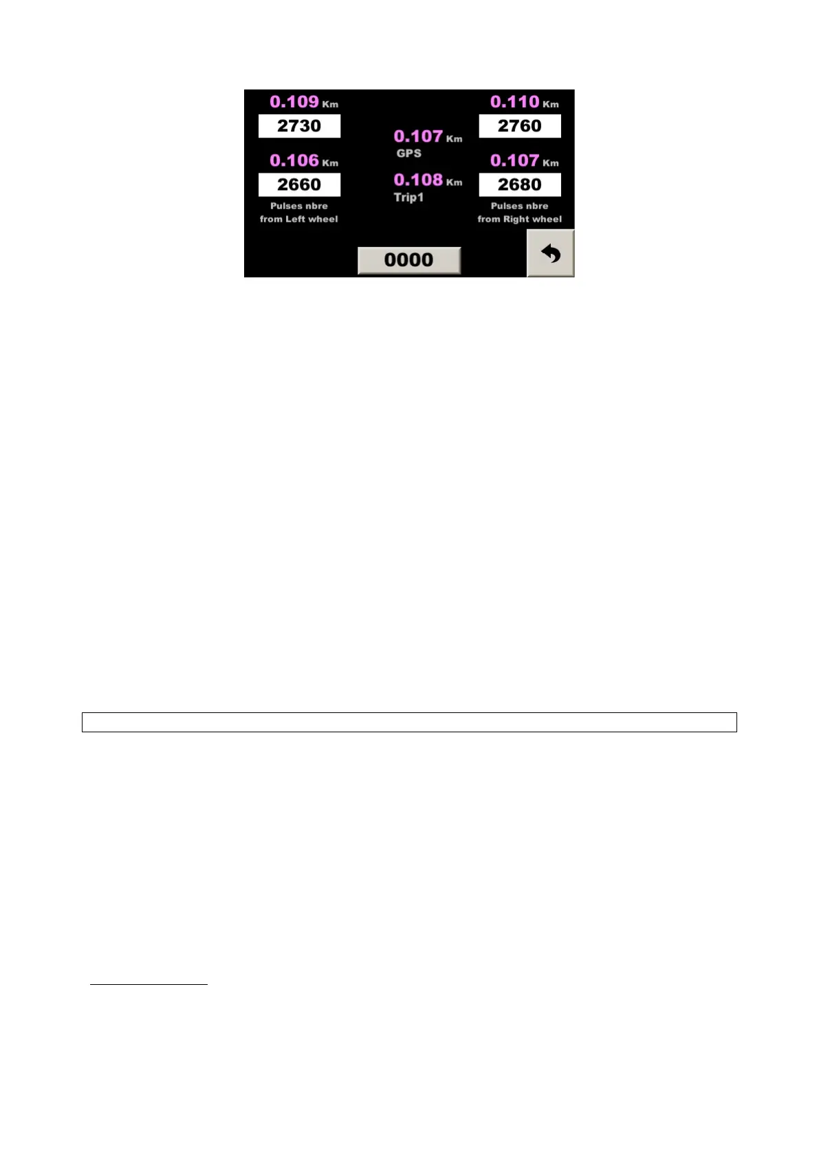 This page help to compare all the wheel “sensors”, the distance calculated for each wheel,