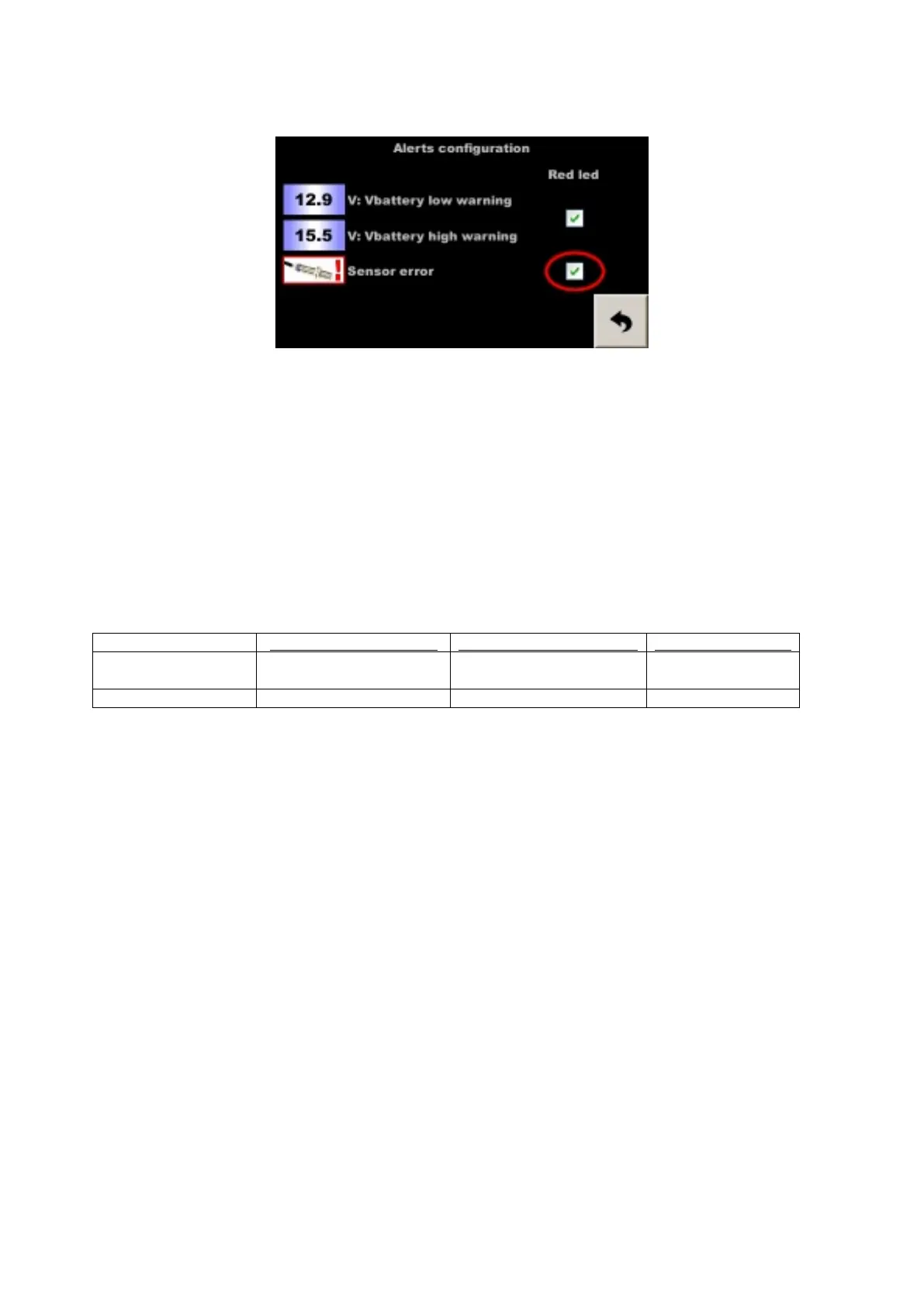 The red LED flashes if the corresponding box is checked in the alert configuration screen: