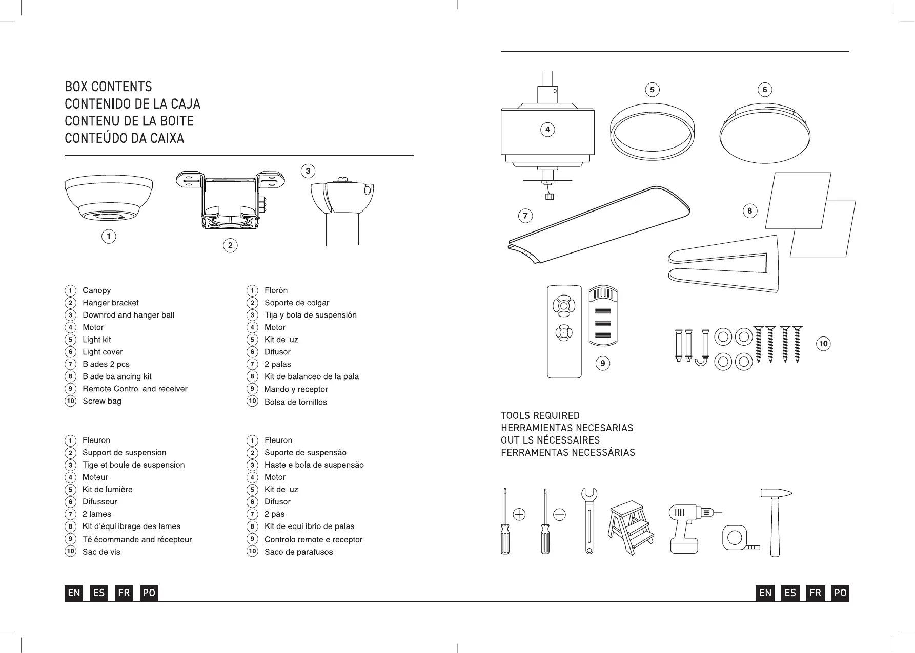 CristalRecord B50631175 - Box Contents; Fan Components List; Required Tools; Assembly Tools List