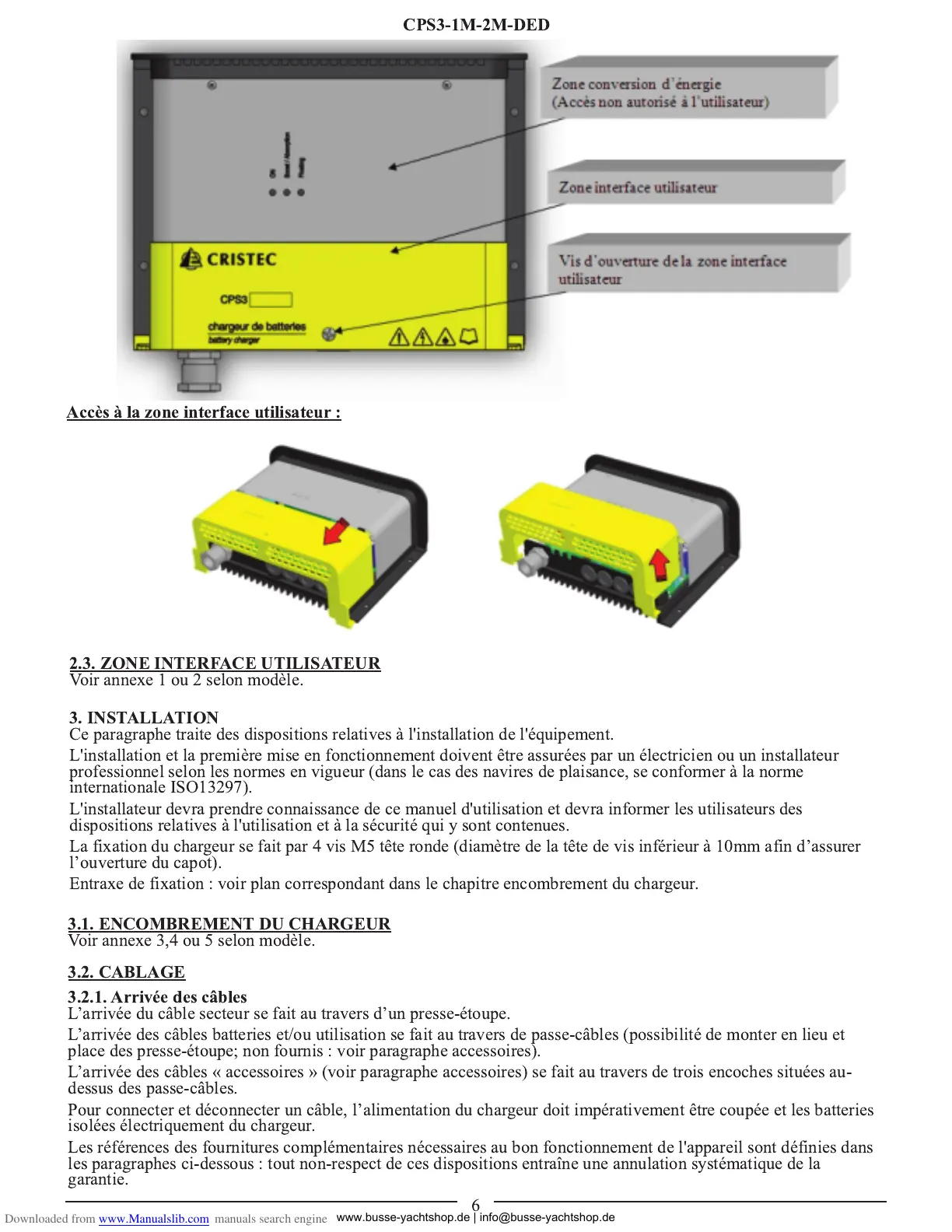 L’arrivée des câbles batteries et/ou utilisation se fait au travers de passe-câbles (possibilité de monter en lieu et