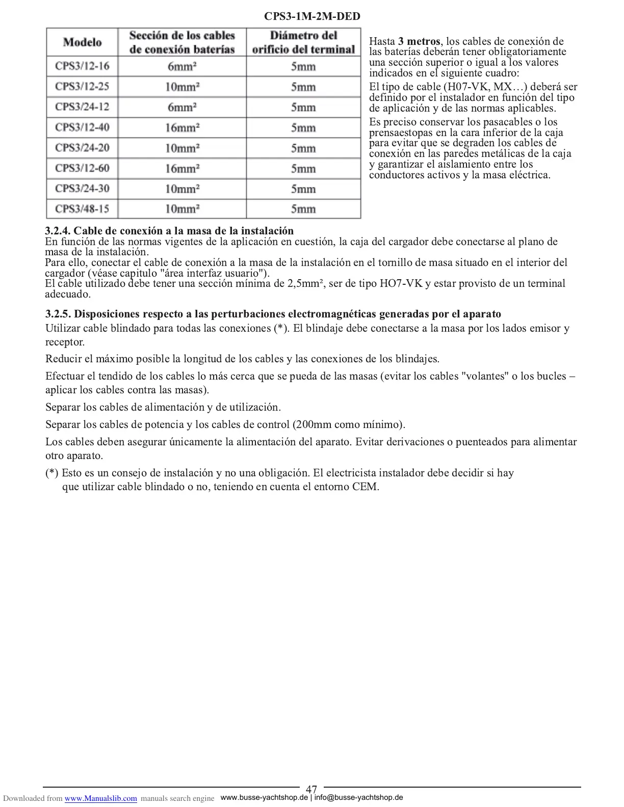 El cable utilizado debe tener una sección mínima de 2,5mm², ser de tipo HO7-VK y estar provisto de un terminal