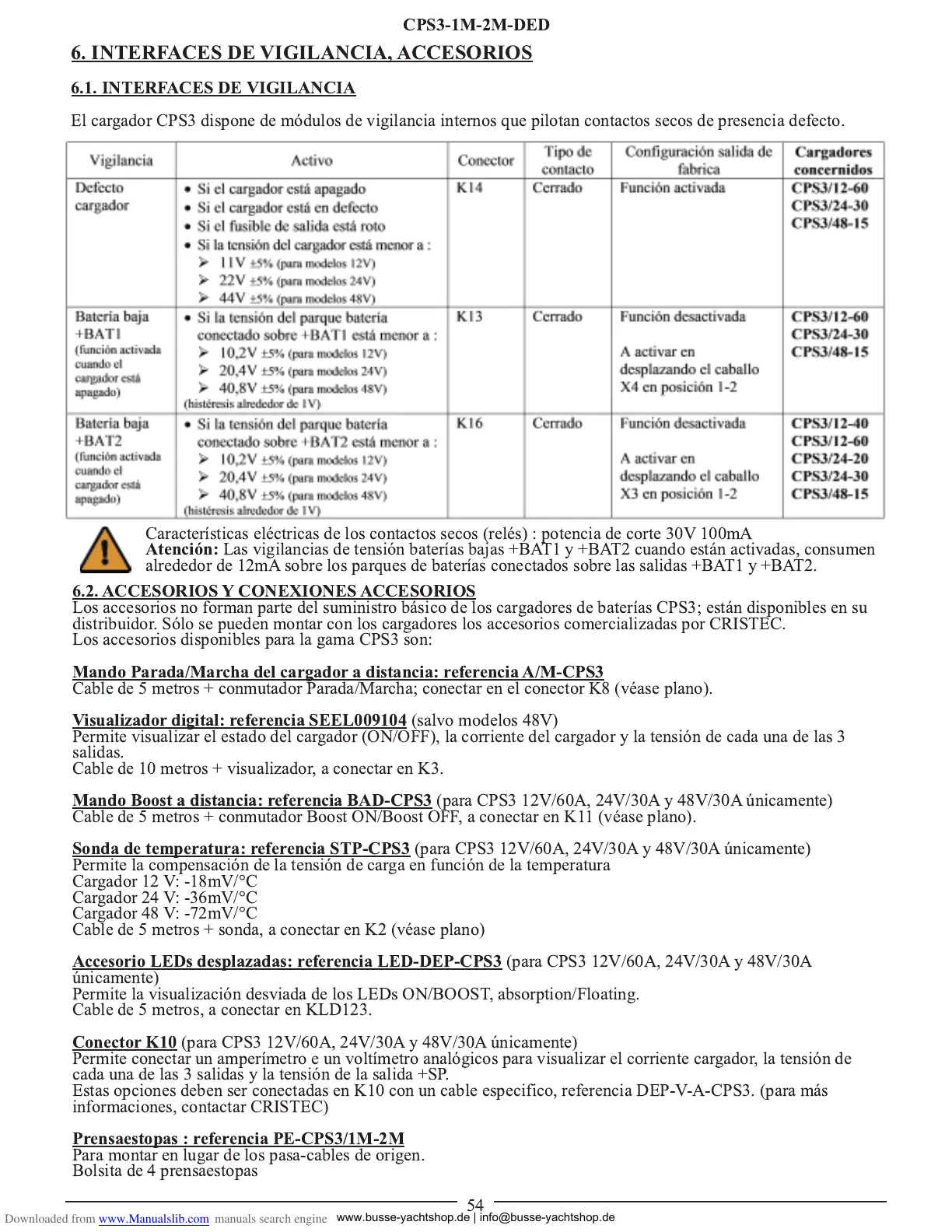 Los accesorios no forman parte del suministro básico de los cargadores de baterías CPS3; están disponibles en su