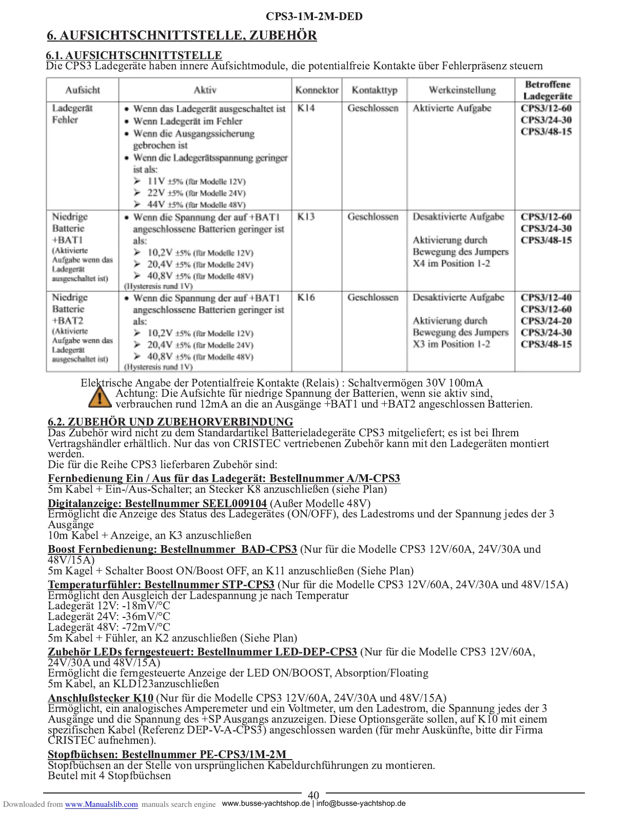 Die CPS3 Ladegeräte haben innere Aufsichtmodule, die potentialfreie Kontakte über Fehlerpräsenz steuern