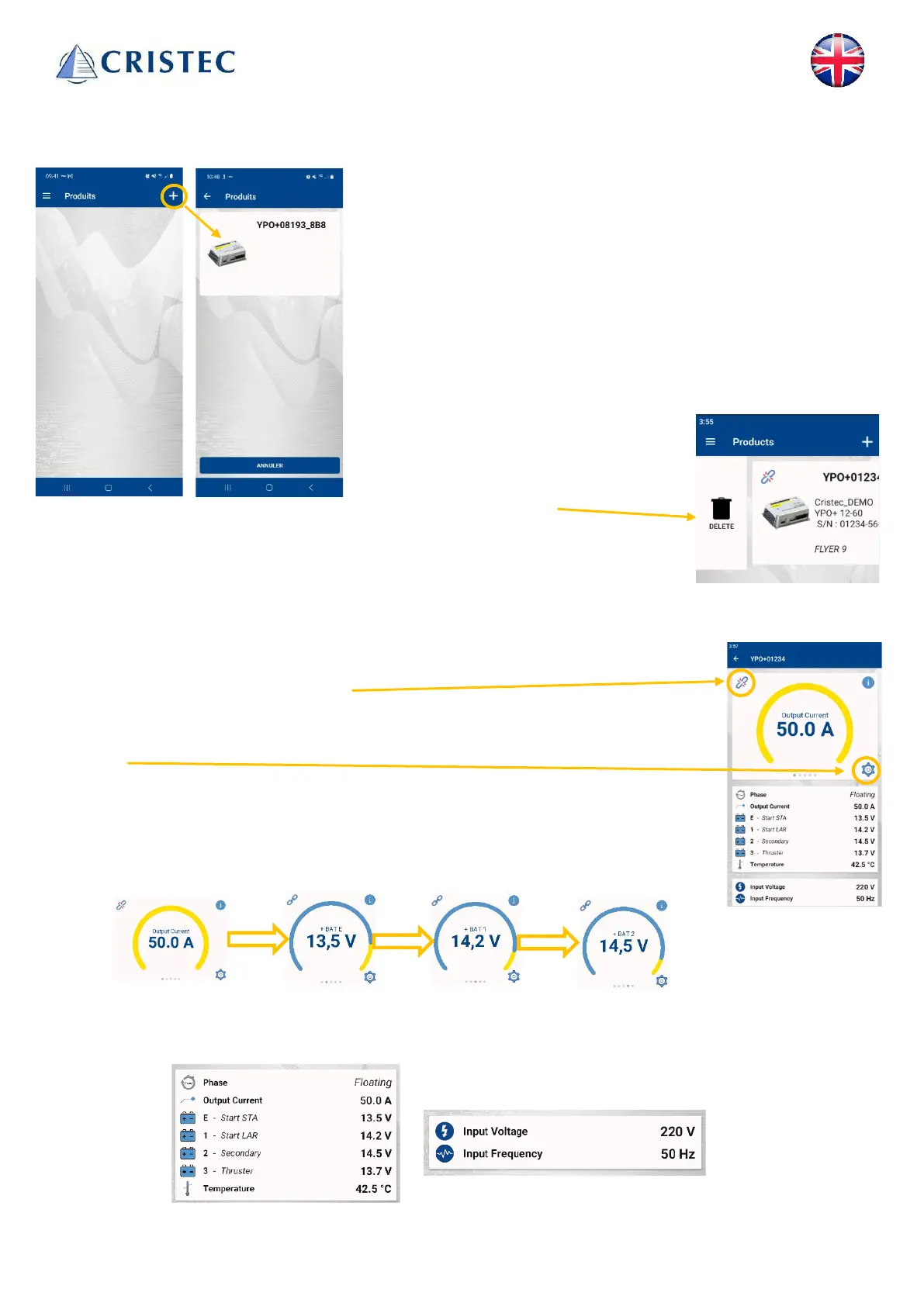 At the top of the screen, you can scroll through voltage and current information of the