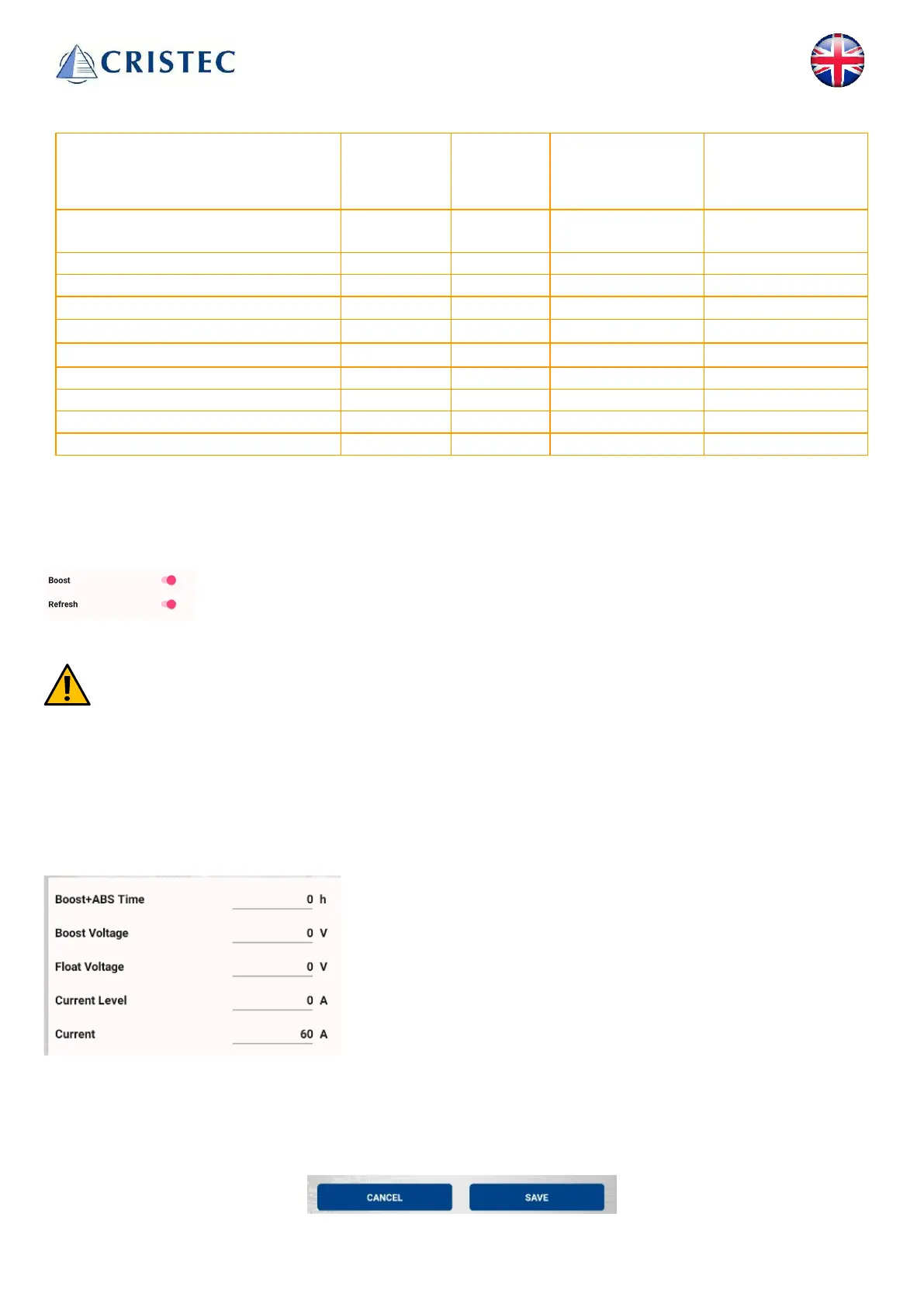 parameters unless you are fully conversant with all aspects of chargers and battery specifications.