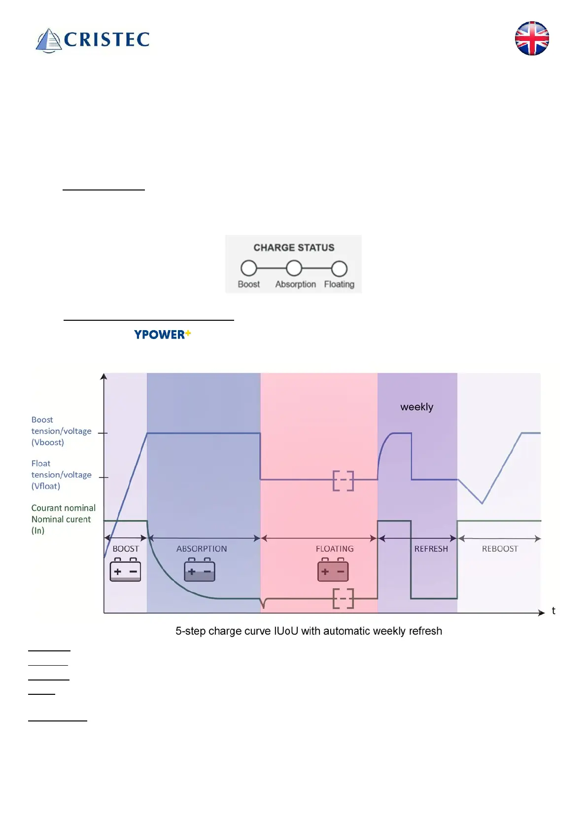 CRISTEC declines all responsibility for damage to batteries or incorrect recharging.