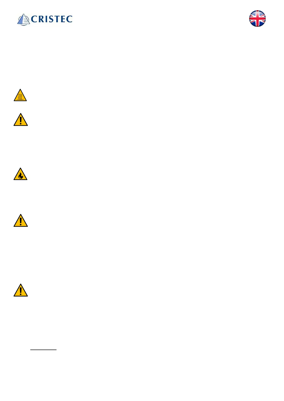 Failure to comply with the installation and use rules voids the manufacturer's warranty and releases CRISTEC