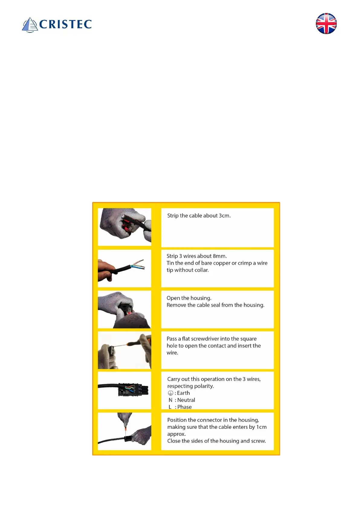 The AC input must be made using a WAGO connector type WINSTA reference 770-103. (Not provided in OE
