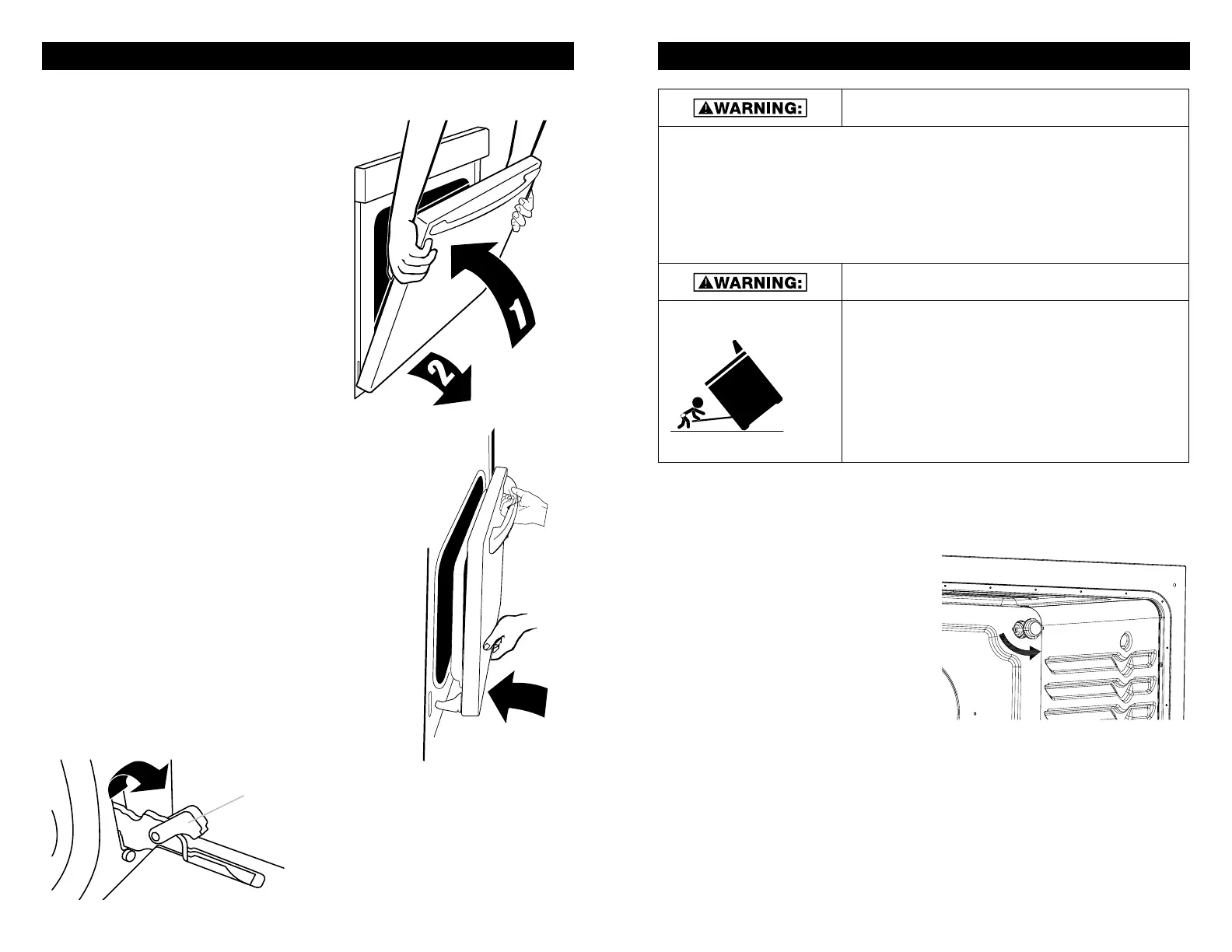 • For normal oven use, it is not suggested to remove the oven door. However, if removal