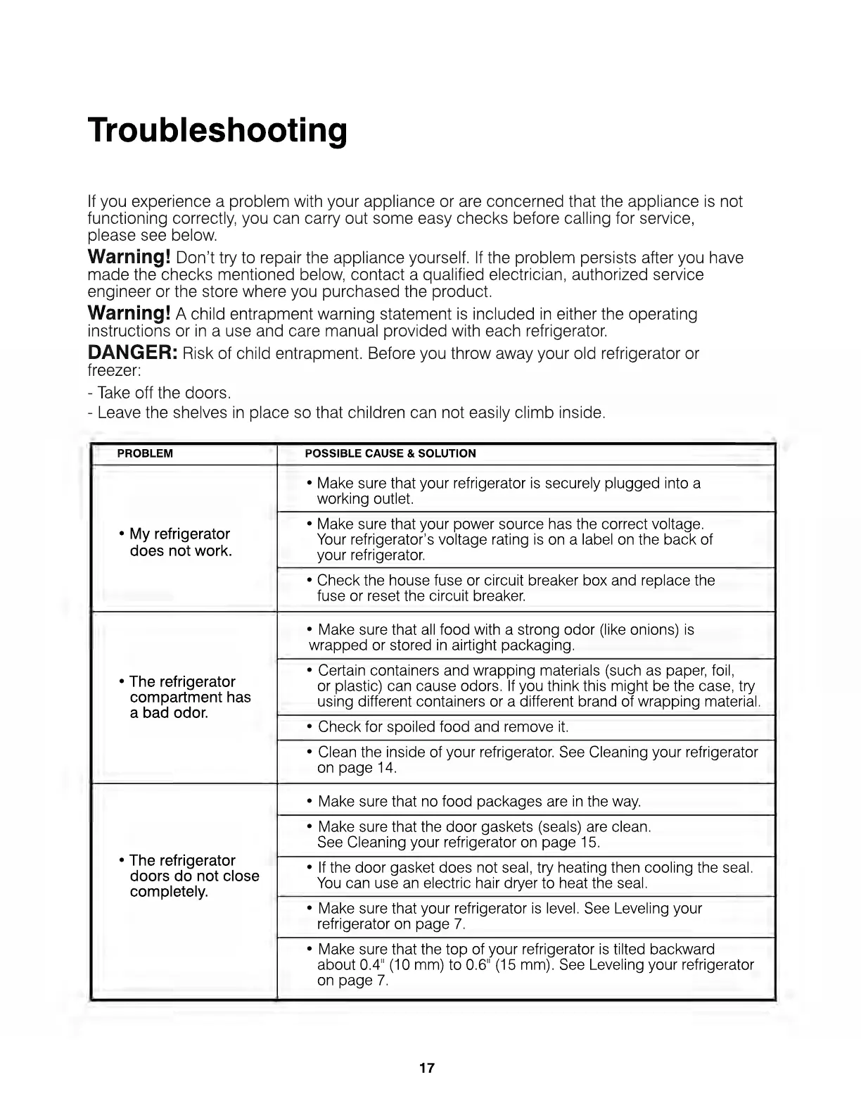 Risk of child entrapment. Before you throw away your old refrigerator or