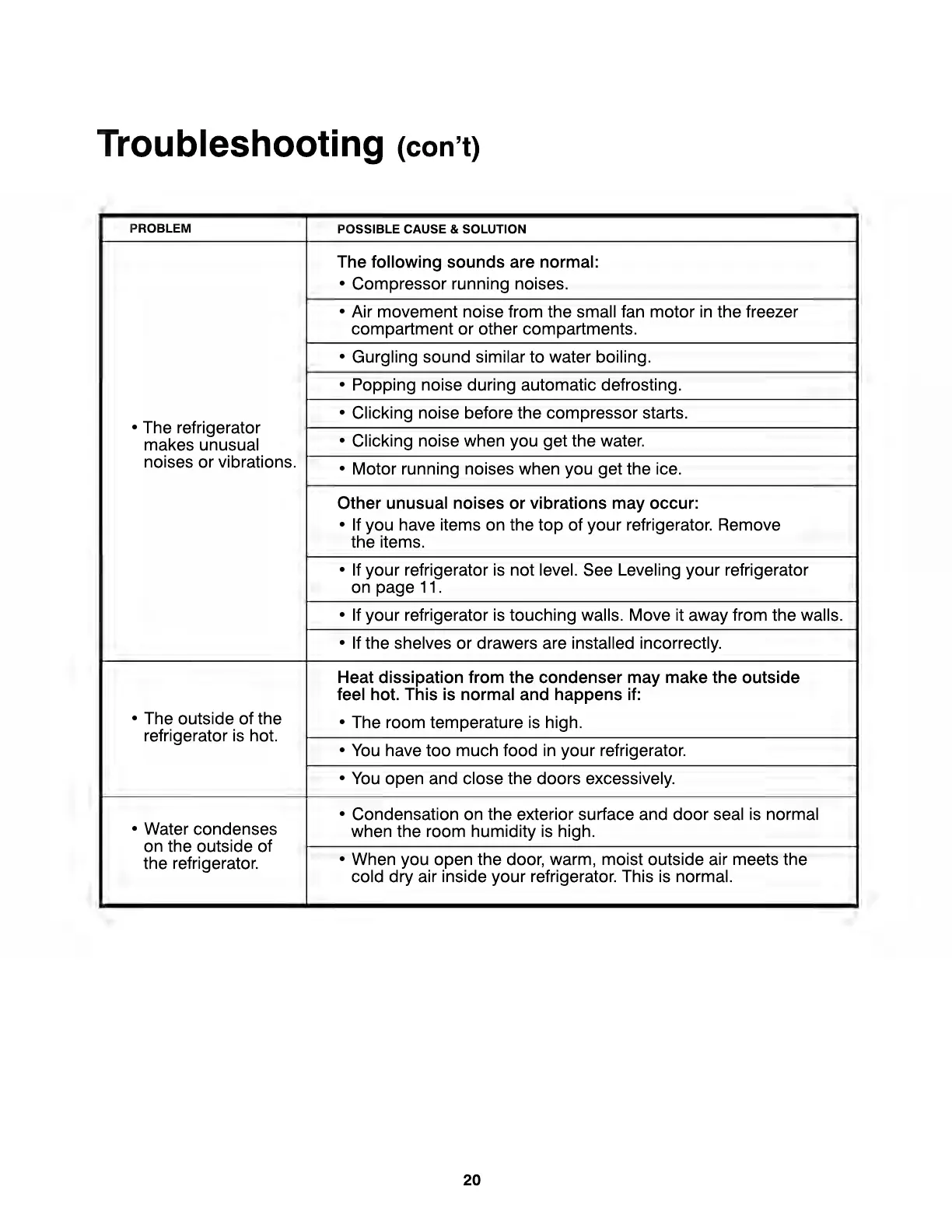 • If your refrigerator is touching walls. Move it away from the walls.
