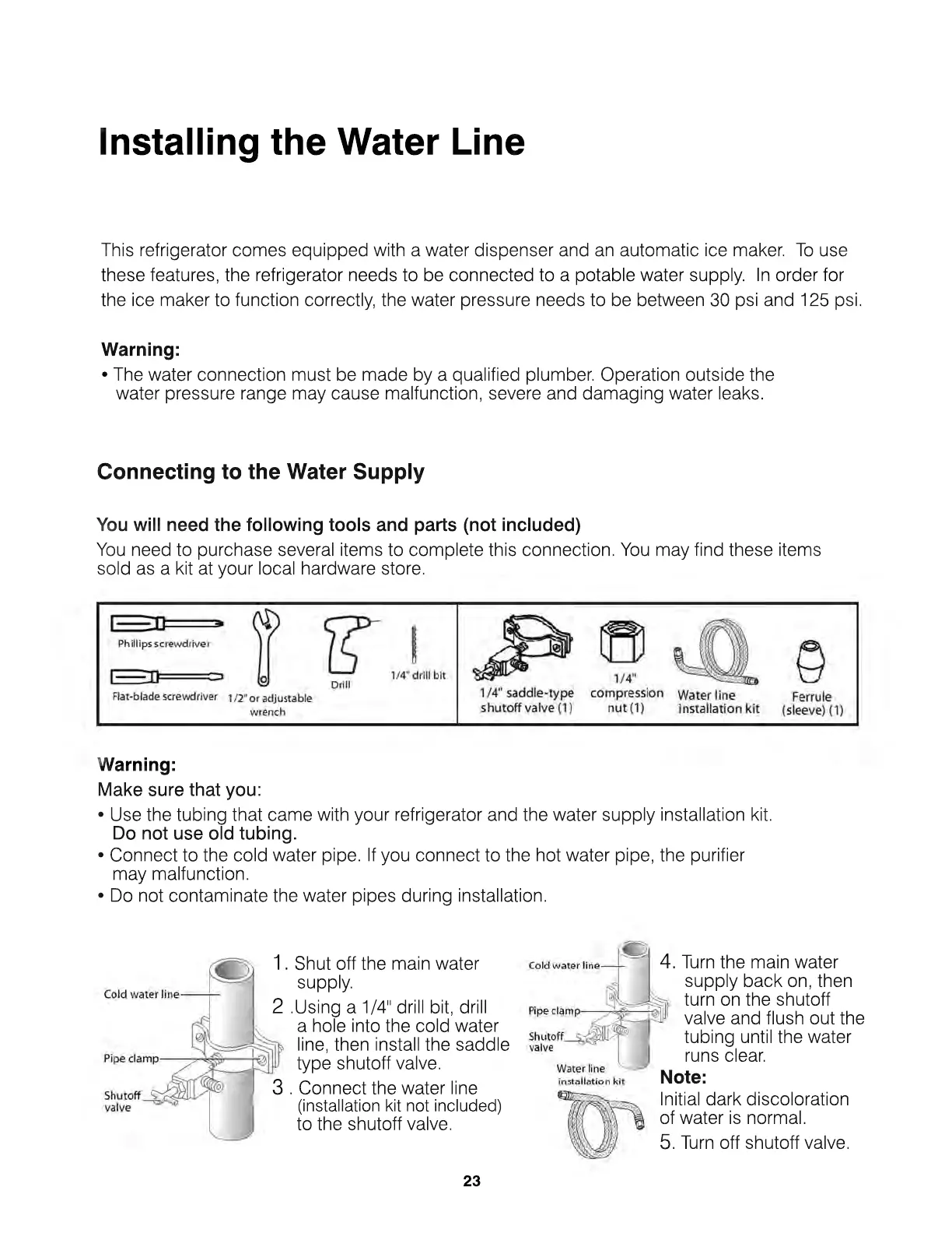 these features, the refrigerator needs to be connected to a potable water supply. In order for