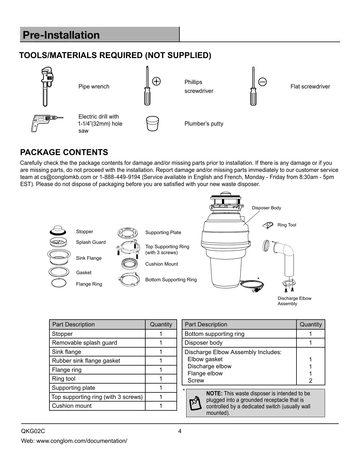 EST). Please do not dispose of packaging before you are satised with your new waste disposer.