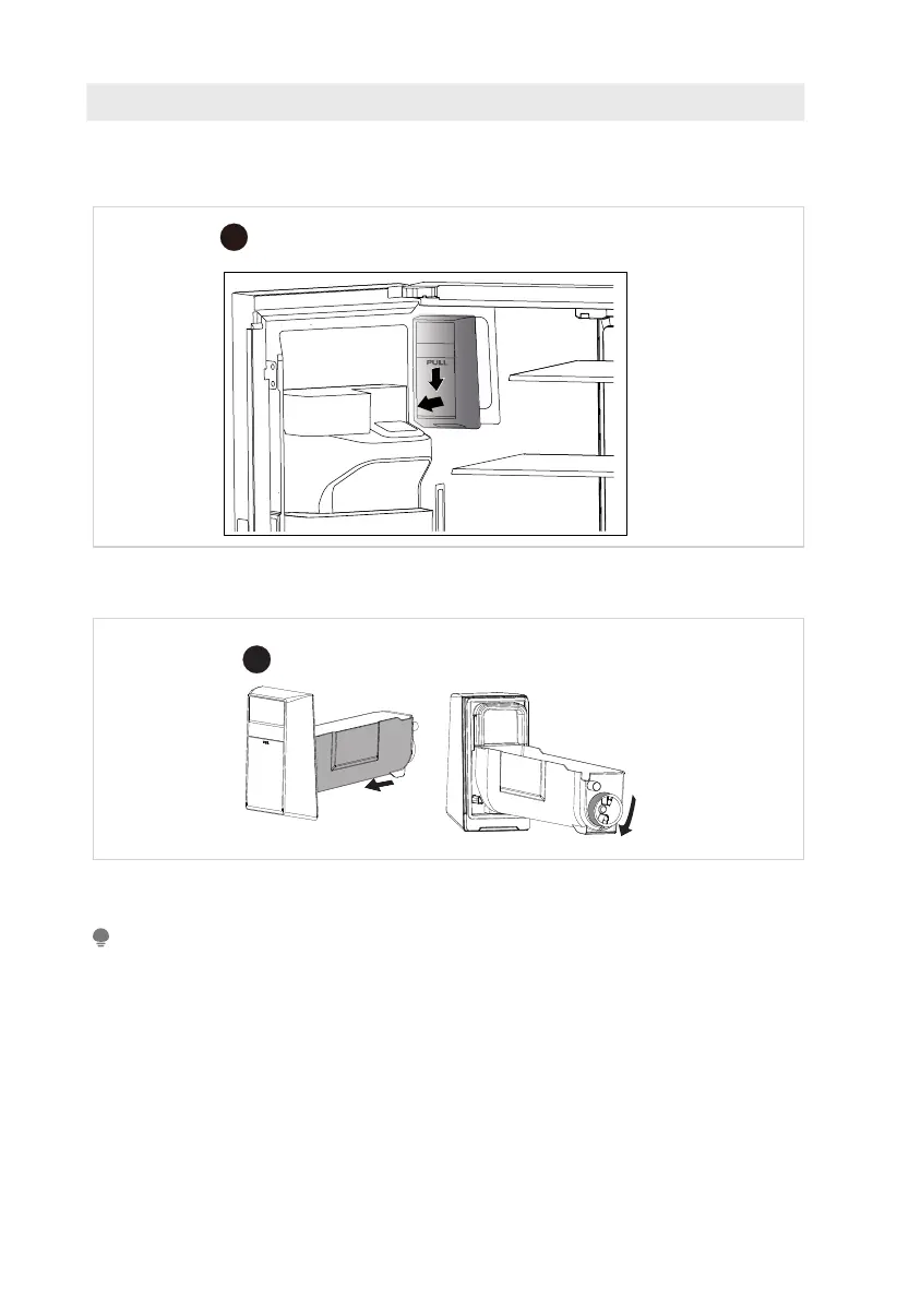 • Hold the button of the ice storage box with your hand, press it gently, and then pull