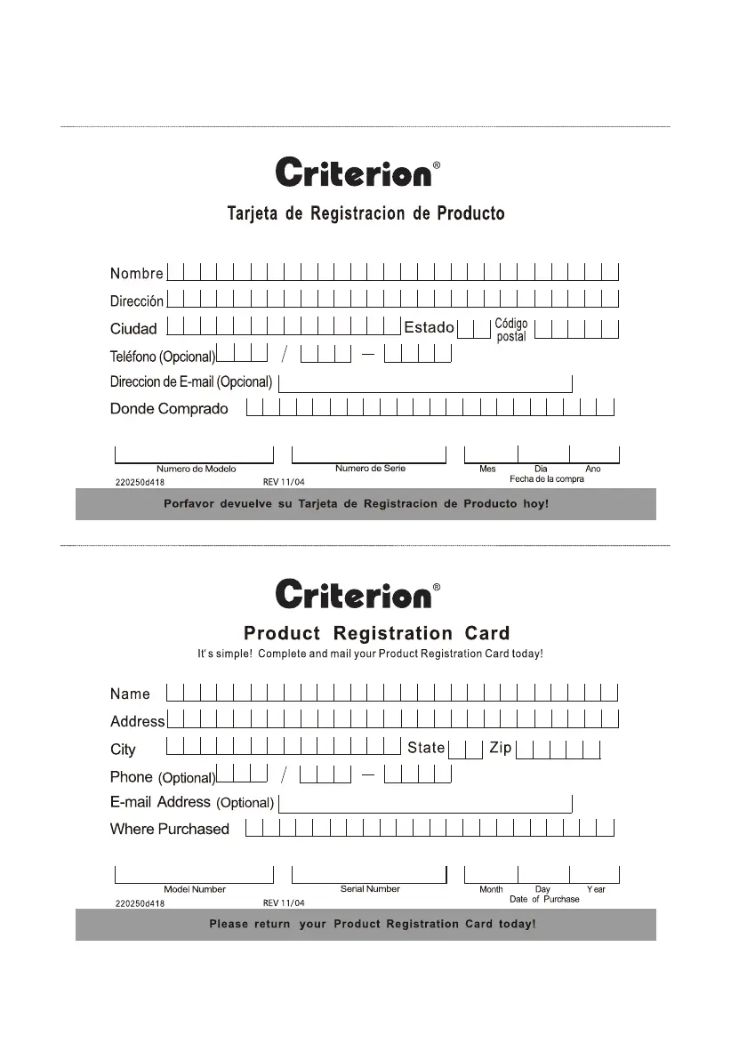 Es sencillo! Complete y envie su Tarjeta de Registracion de Producto hoy!