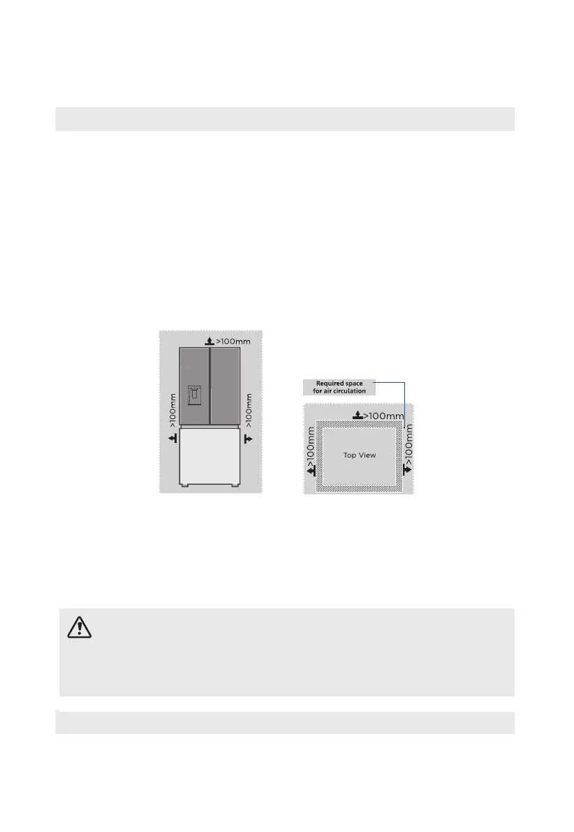 • The refrigerator should be placed in a well-ventilated indoor place; the ground