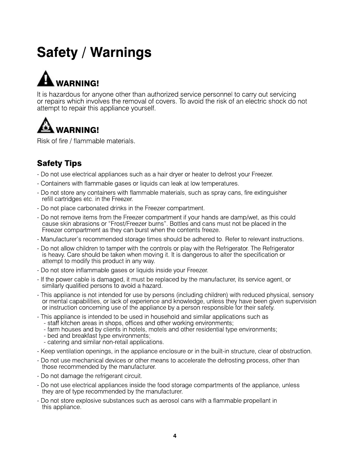 - Do not store inflammable gases or liquids inside your - Do not store inflammable gases or liquids inside your Freezer.