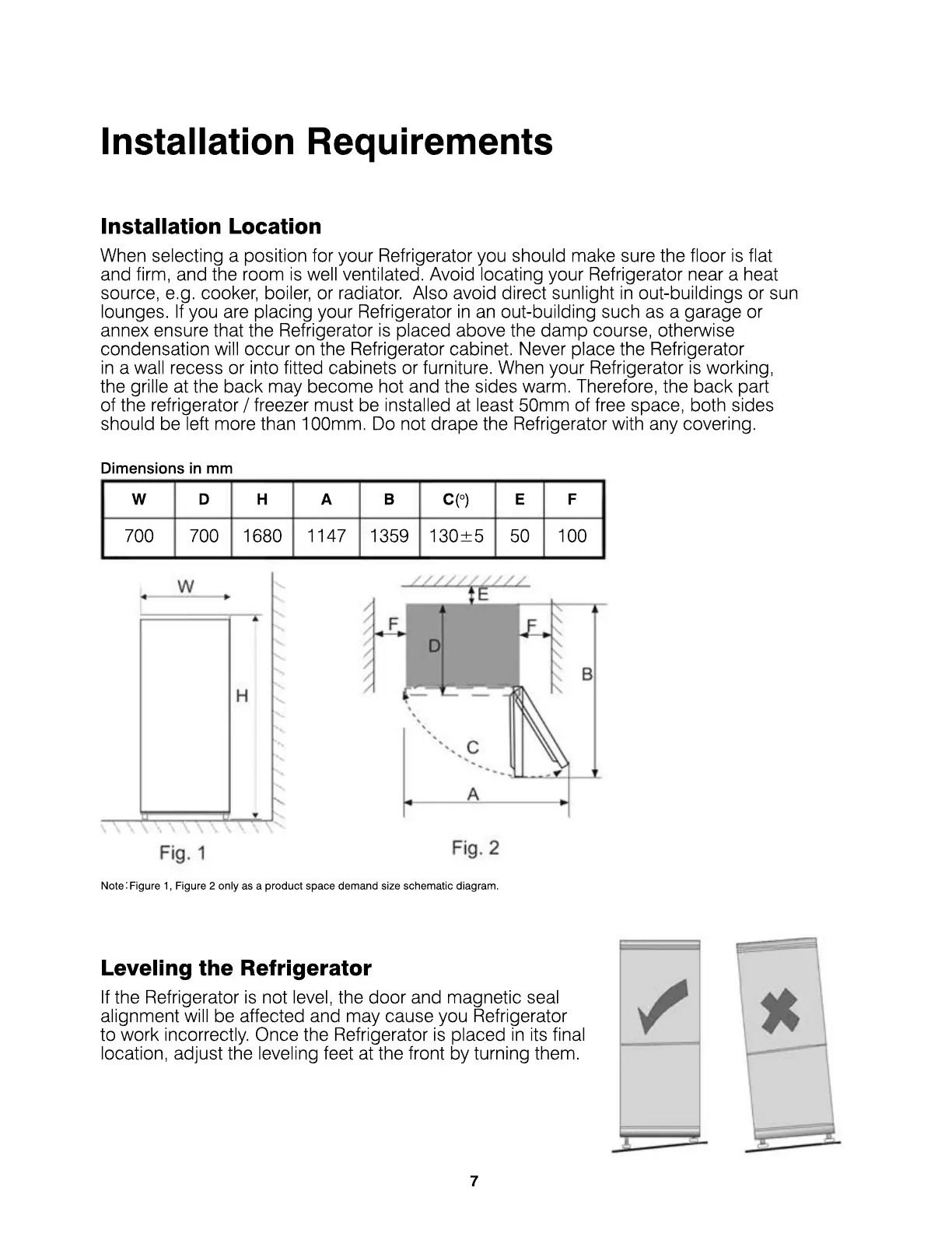 When selecting a position for your Refrigerator you should make sure the floor is flat
