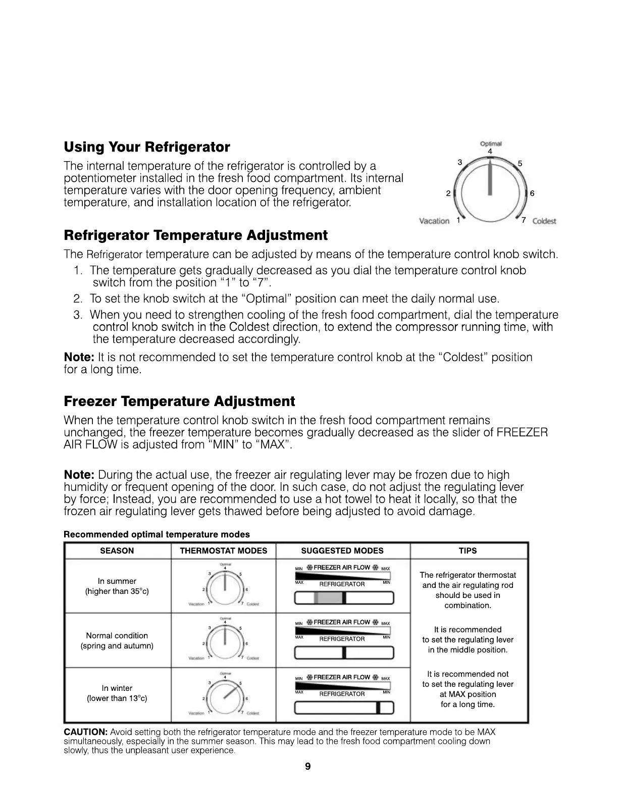 Note: It is not recommended to set the temperature control knob at the “Coldest” position