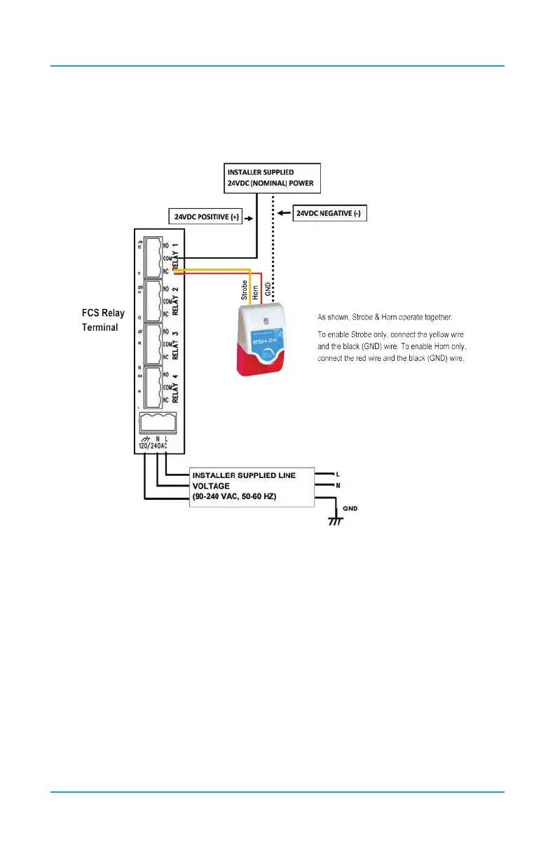 NOTE: DO NOT USE solid core wire for connection to relay terminal strip. Use stranded wire