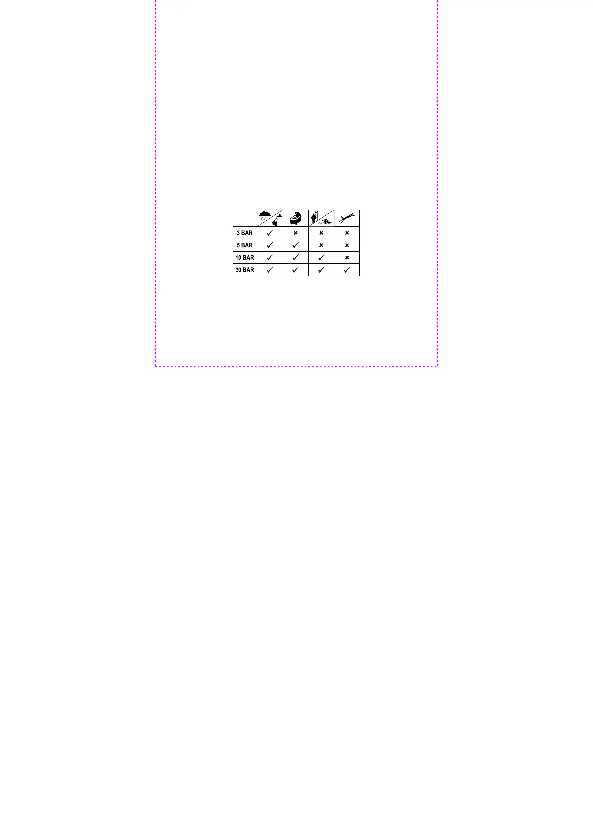 Vesitiivis 3 bar:iin asti. Bar-näyttö viittaa ilmanpaineeseen, jota