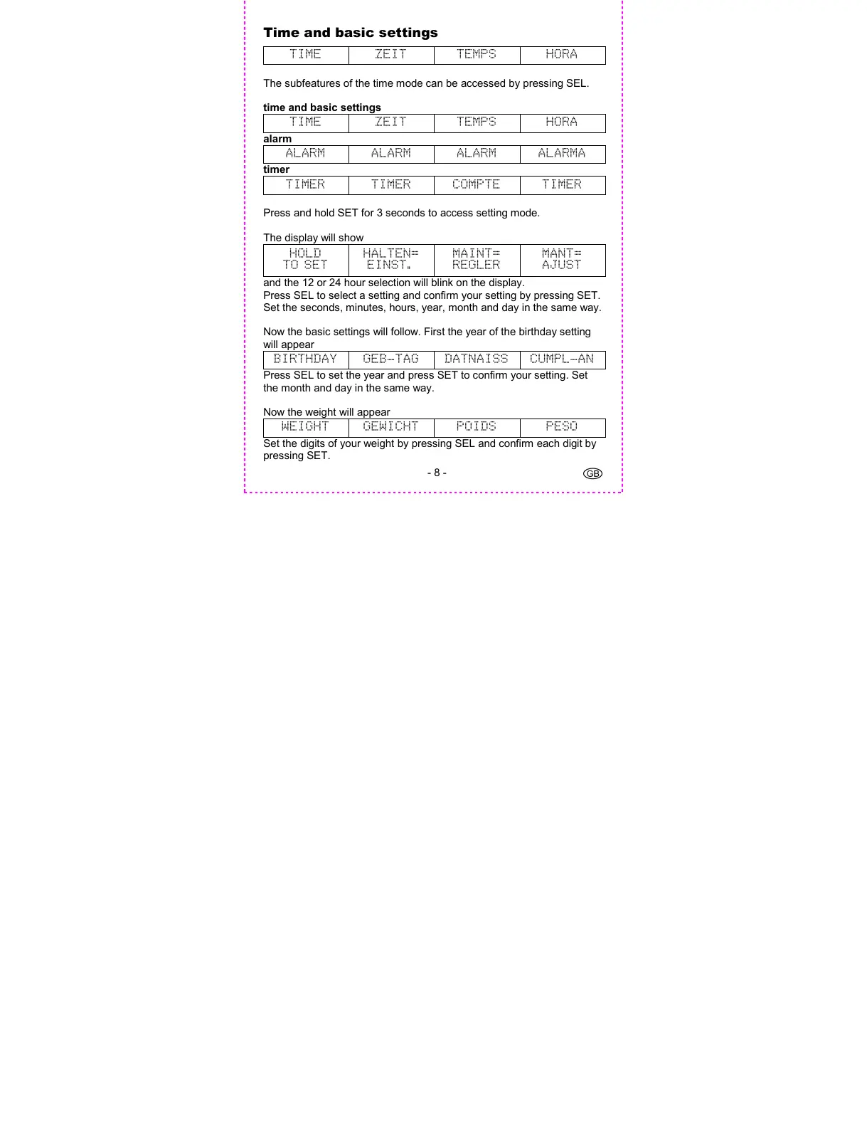 Set the digits of your weight by pressing SEL and confirm each digit by