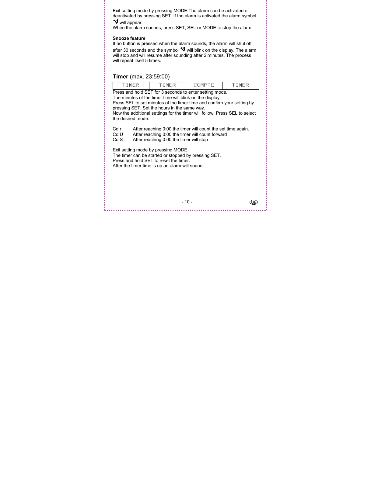 When the alarm sounds, press SET, SEL or MODE to stop the alarm.