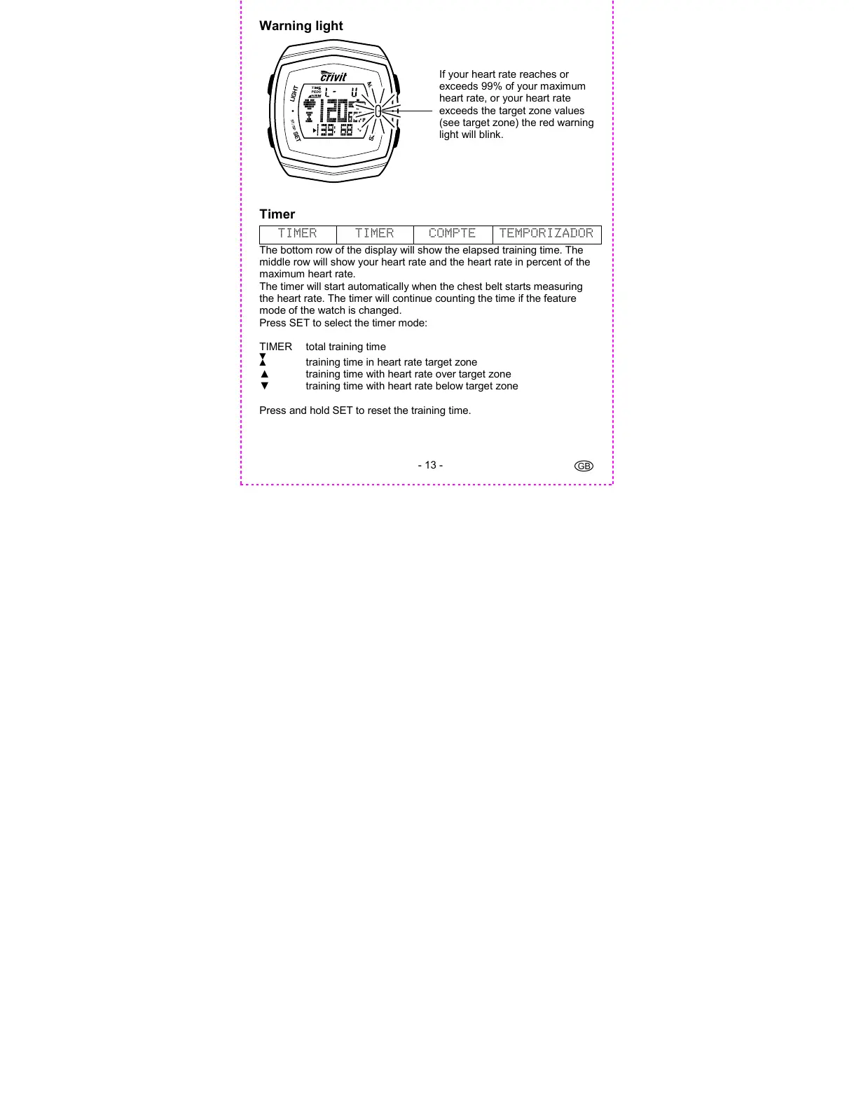 Press and hold SET to reset the training time.