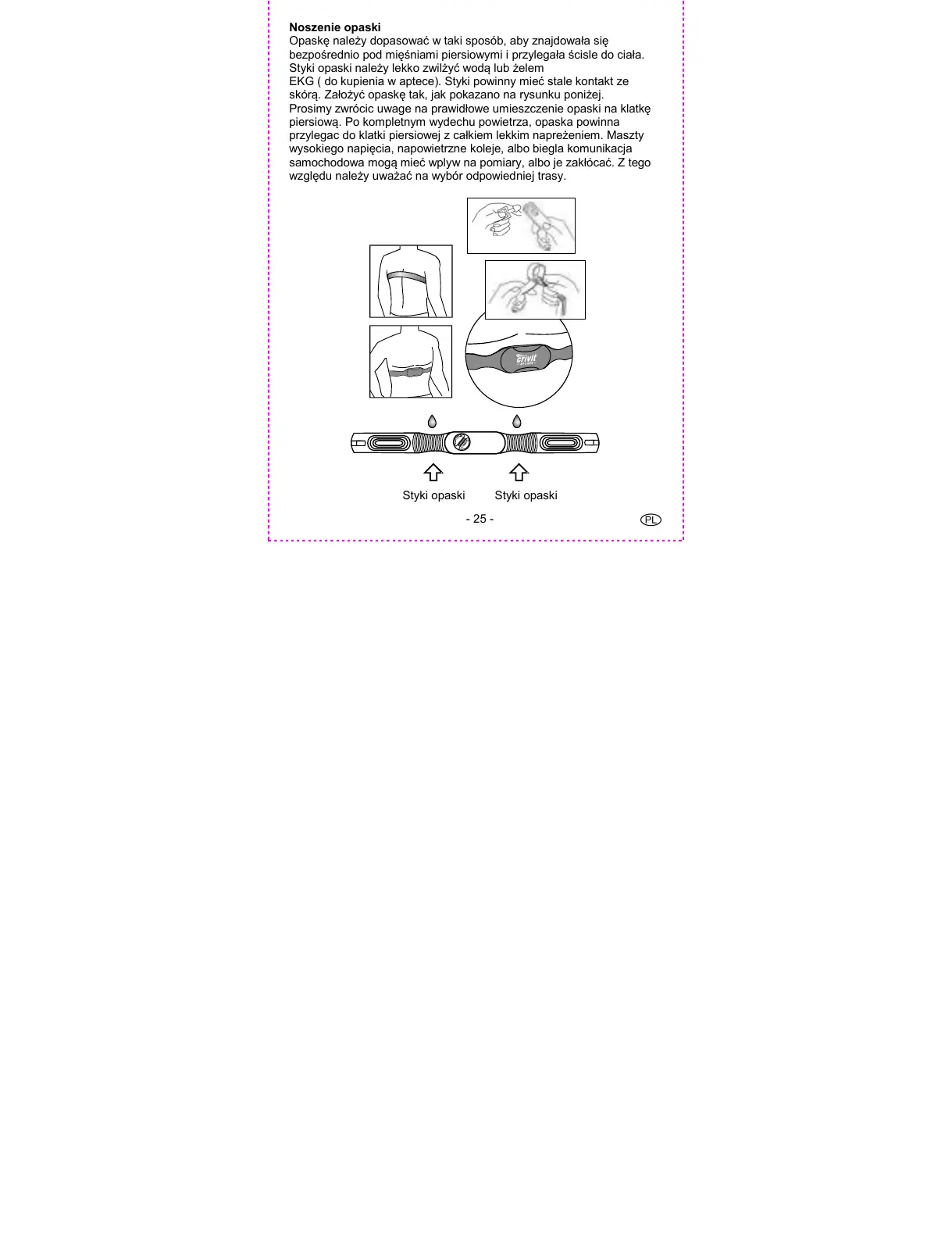 Prosimy zwrócic uwage na prawidłowe umieszczenie opaski na klatkę