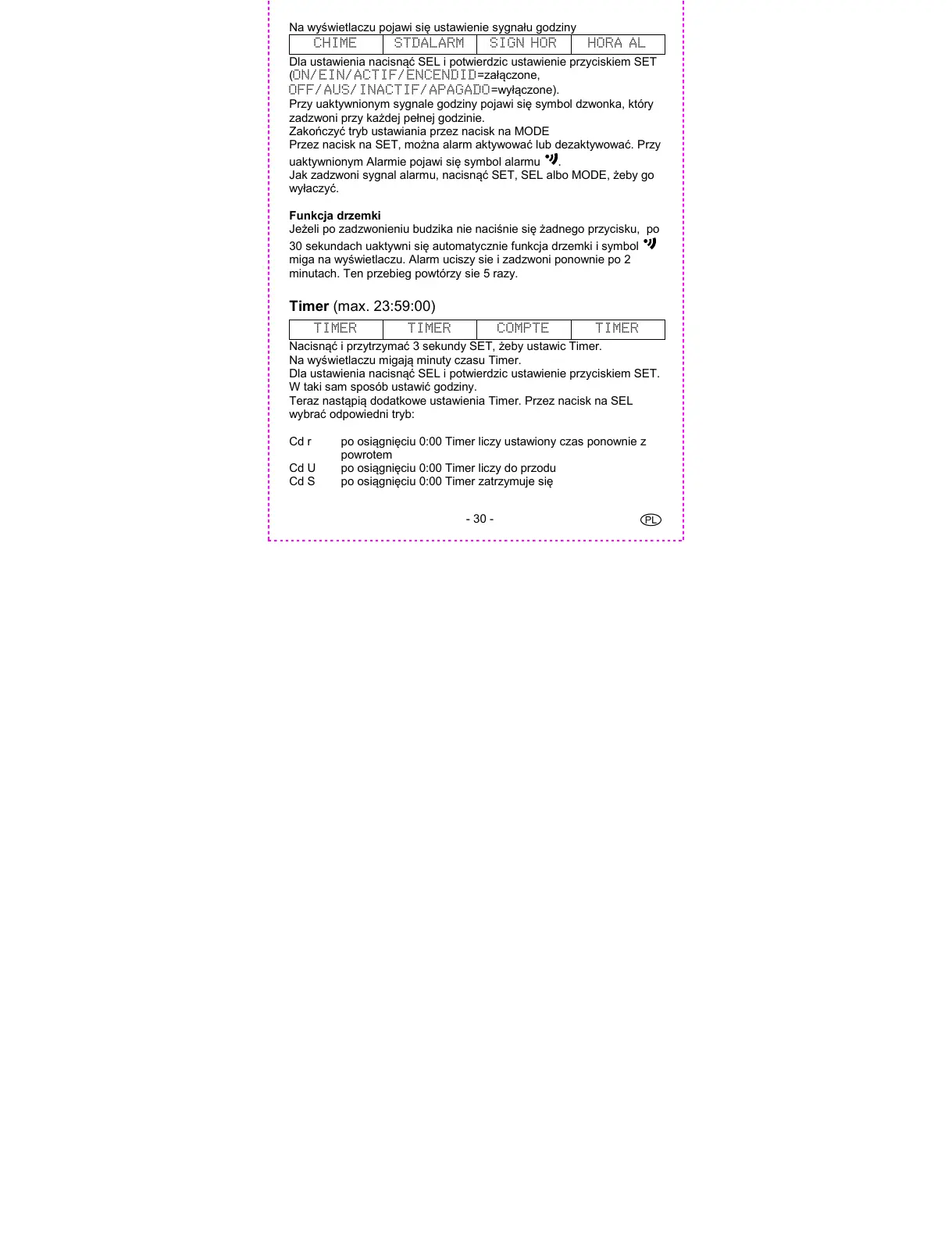 30 sekundach uaktywni się automatycznie funkcja drzemki i symbol