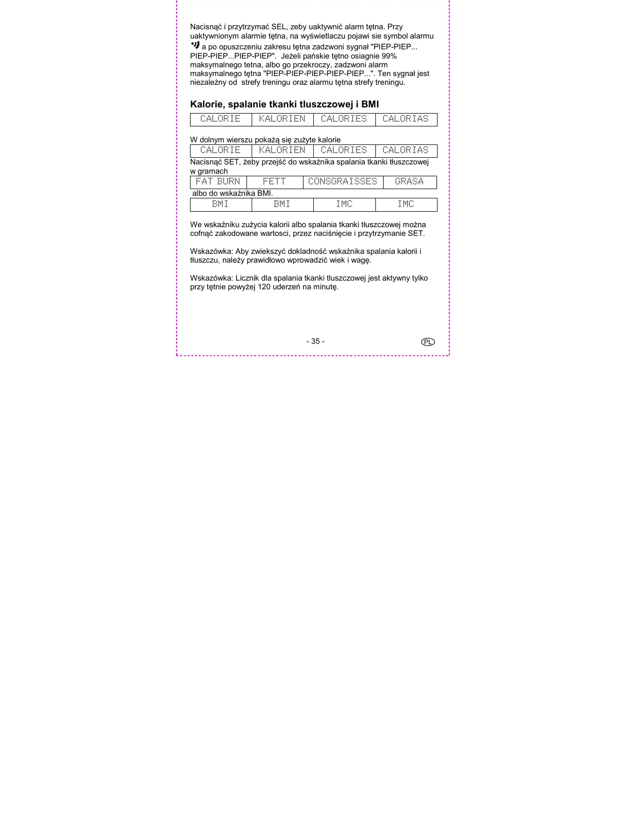 maksymalnego tętna "PIEP-PIEP-PIEP-PIEP-PIEP...". Ten sygnał jest