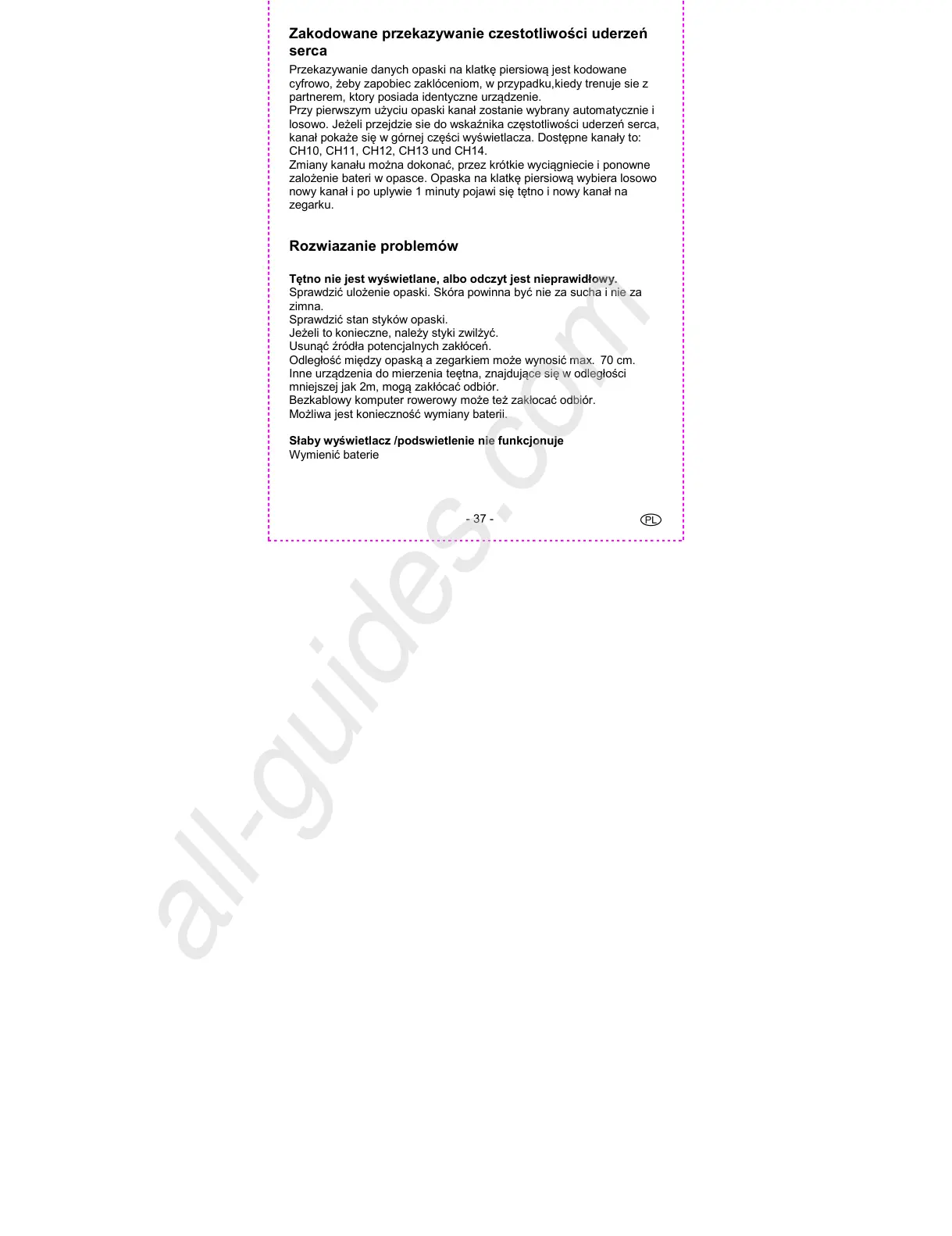 Odległość między opaską a zegarkiem może wynosić max. 70 cm.