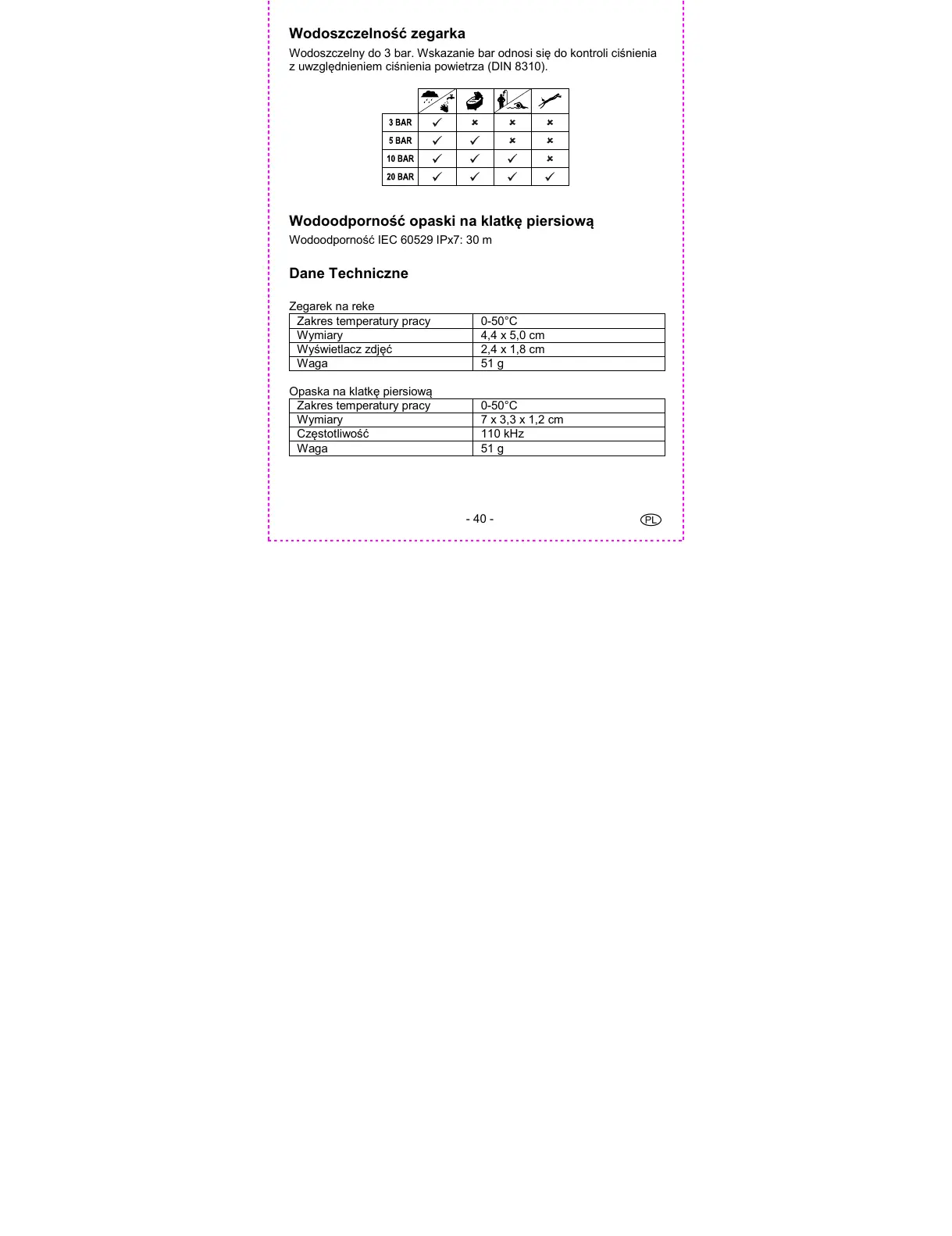 Wodoodporność opaski na klatkę piersiową